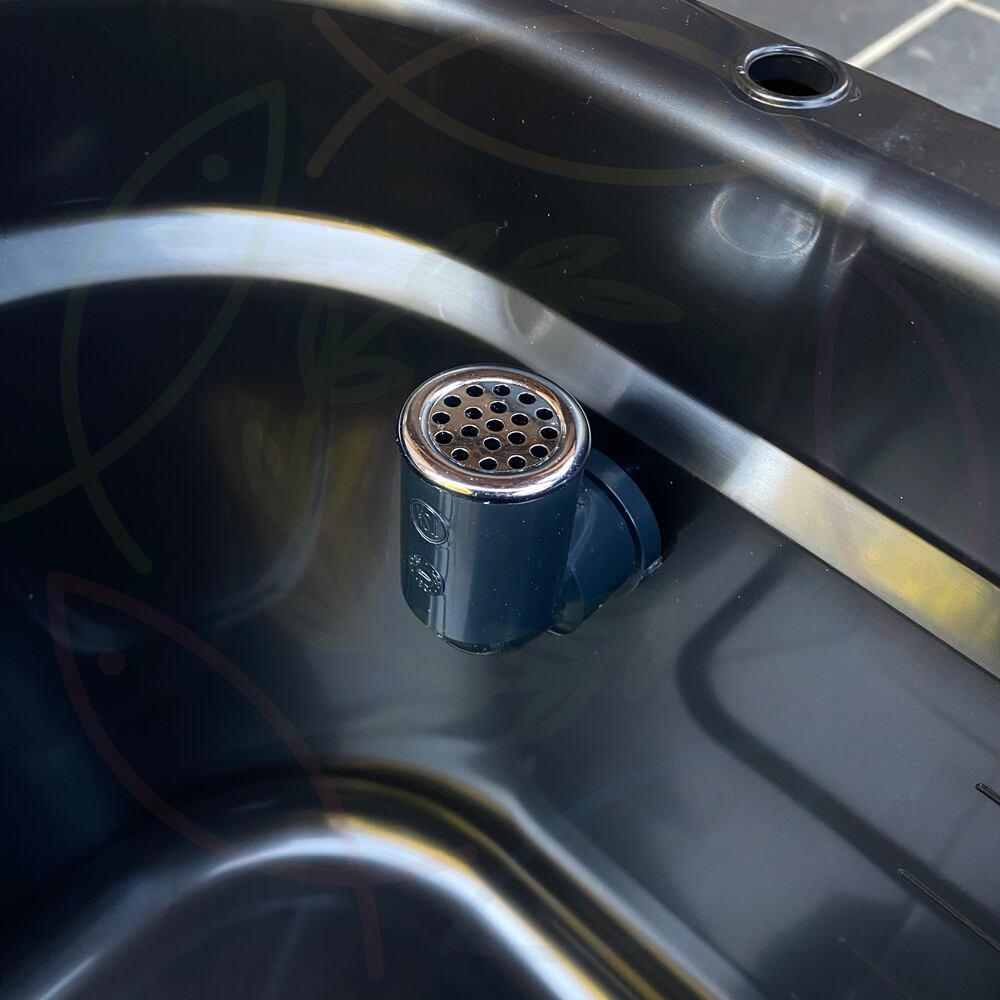 流出防止キャップ付で生体の流出を防止しています(メッシュ穴の直径約2.5mmですので孵化直後の針子には向きません)。