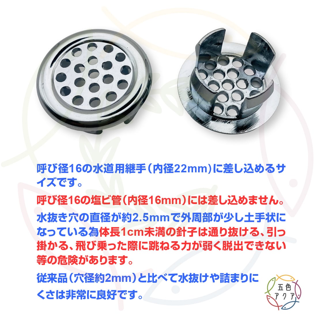 オーバーフロー加工用穴あきキャップx2個 16A継手用 メダカ飼育ケースや金魚飼育容器の水溢れ対策に タライ トロ舟