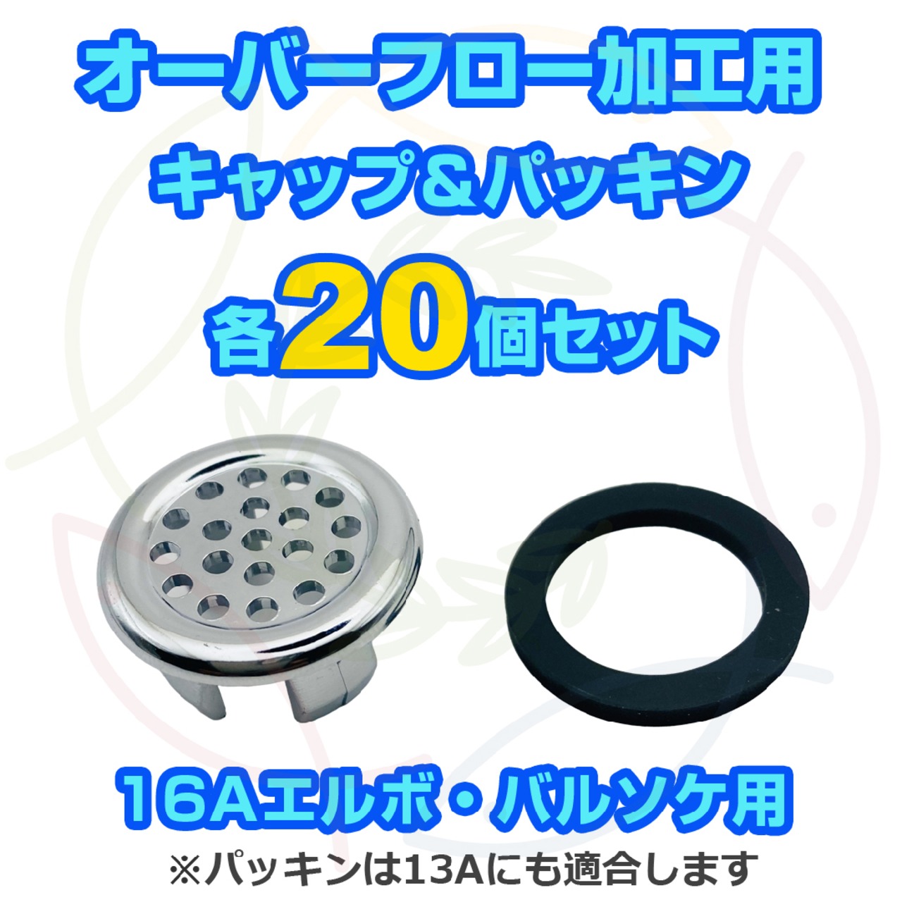 オーバーフロー加工用キャップ&パッキンx20セット メダカ飼育ケースや金魚飼育ケースの大雨対策に 水槽